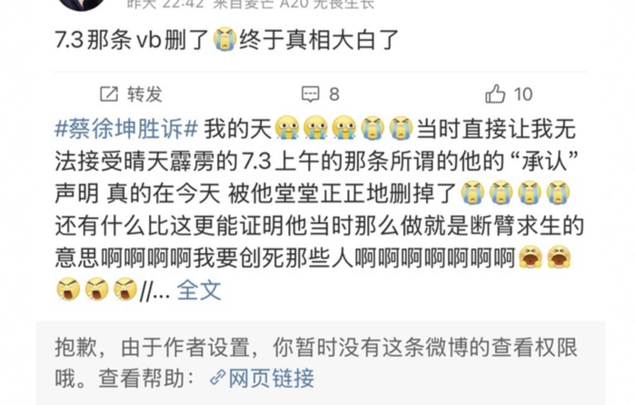 还有网友发现,当年蔡徐坤的道歉长文也被他给删了,就这么光明正大岁月史书。