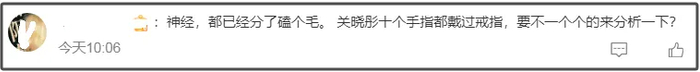 对比关晓彤中指和无名指的戒指,能发现都是素圈,看起来很像是同一枚。如果是的话,两人订婚或者结婚的概率就高了。但也不排除就是装饰戒,只是关晓彤若分手了,装饰戒选无名指也有些奇怪。关于关晓彤鹿晗订婚的猜测,关晓彤粉丝反应激烈,吐槽还在磕糖的网友,认为关晓彤十个手指都有戴戒指的理由,分手了还磕很没有礼貌。