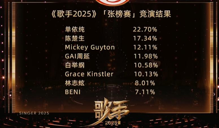 相比较过往《歌手》首发阵容,《歌手2025》邀请了更多外国歌手,分别是米奇·盖顿、BENI和格瑞丝·金斯勒,剩下五位华语乐坛歌手分别是林志炫、陈楚生、GAI(周延)、白举纲和单依纯——好像缺个压场大咖的感觉啊,怪不得节目预热收视有点一般,连上届歌王那英出场都没带起来。