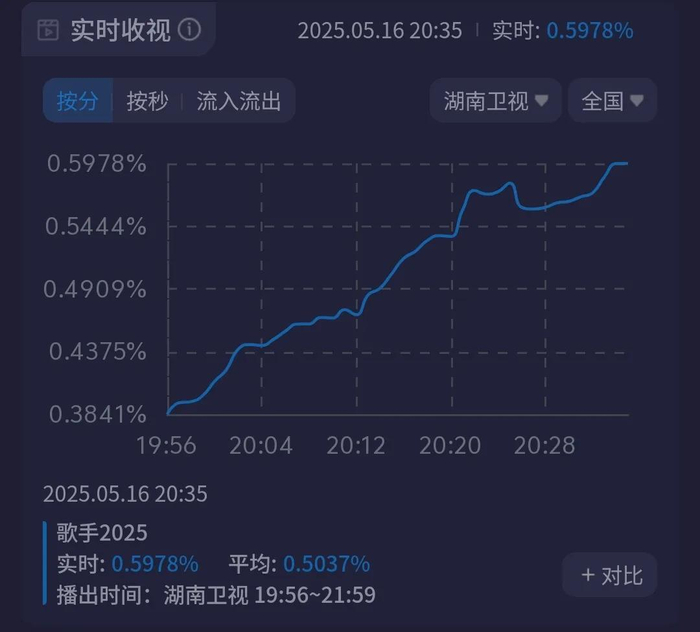 ——对比湖南台和浙江台收视趋势,发现《歌手2025》收视很不稳定,首发歌手表现留不住观众,一直起起伏伏。
