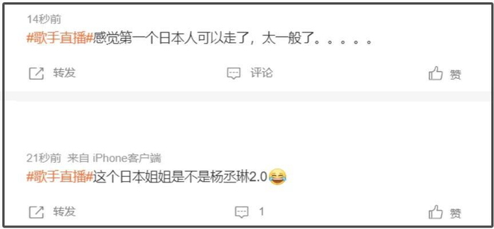 等到BENI开口演唱,更是很快收到了差评,她本身长相明艳,却选了一首节奏欢快的歌,偏偏又是个小嗓,整体表现让人想起上一季早早被淘汰的杨丞琳。