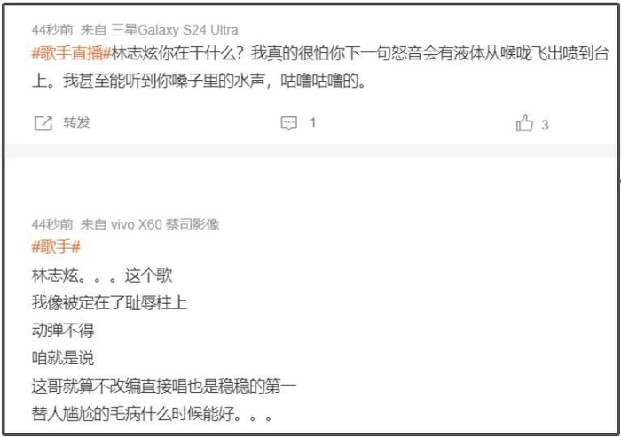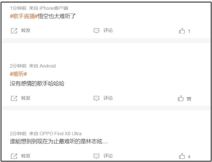 这时候“难听”热搜也来了,有人吐槽单依纯风格像王菲是刻意模仿还难听,不过被吐槽最多的还得是林志炫的改编。