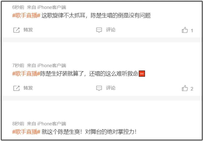 不过针对陈楚生的演唱,观众反馈两极分化,有人觉得歌选错了,人唱得不错,有人觉得不好听又油腻。