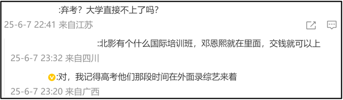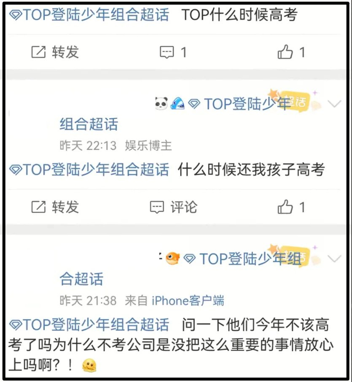 也有不少粉丝喊话公司做出回应,为什么不让艺人去高考反而去录节目?