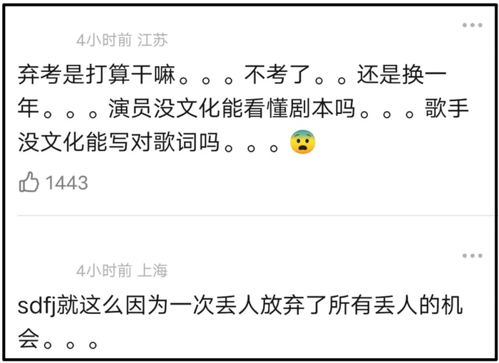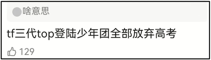 网友对于这种“弃考”行为非常不解,因为这些养成系并不算很红,尤其这几年选秀男团逐渐落寞,就更没什么水花了,应该是能空出时间备战高考的。