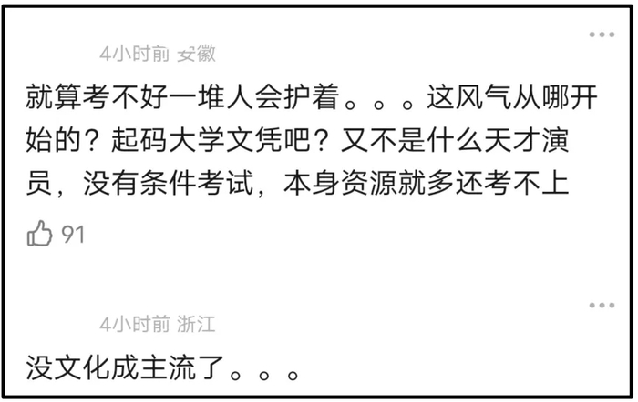 但也有网友表示,可能不单是公司的问题。现在对艺考生的文化课分数要求越来越高,如果真的艺人有能力去考,不可能公司会压着不让人去。言外之意就是公司不想让艺人瞎折腾,别到时候考不上还被嘲讽,影响口碑。