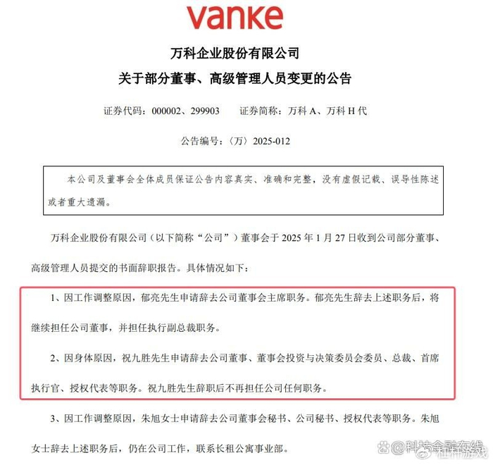 2025年1月辞去万科董事、总裁、首席执行官等所有职务。当时给出的理由是“个人原因” 。如今看来,这次辞职更像是一次提前切割。
