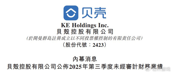 2025年第三季度,贝壳交出了一份充满矛盾信号的成绩单。