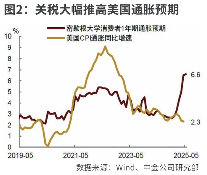 表面上看,当下美国的通胀数据并不高,但这是滞后的。5月密歇根大学的1年期通胀预期飙升至7.3%,这比2024年底大幅上升了4.4个百分点。