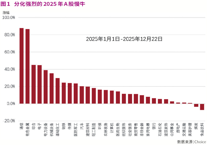 在新旧动能交替之际,一涨一落容易让整体经济看起来似乎并不强,但这样的增长无疑具有更高的质量,2025年的市场也清晰地给出了答案。科技板块领涨全年市场,年内通信板块大幅上涨约88%,电子板块上涨近45%。相反,旧动能的相关领域受到市场冷落。