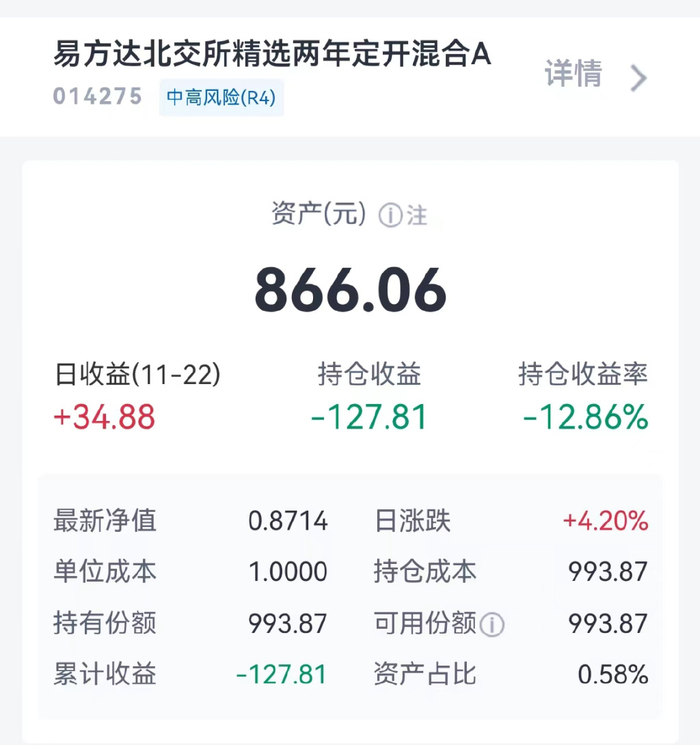 小编两年前也入坑了一只北交所定开基金,这几天看着A股被北交所涨停包围了,心里美滋滋,但打开账户一开,却也还是亏的。。。