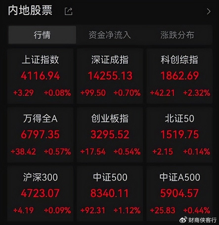 早盘三大指数象征性低开了一阵,随后便一路逆势上攻,丝毫不给空头机会。截至收盘,上证指数、深成指、沪深300都是红的,科创50更是一骑绝尘,暴涨3.48%!
