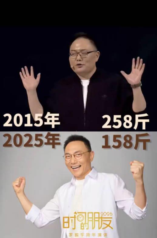 来自罗振宇社交账号31日下午,罗振宇在社交平台分享了自己减重的过程,视频显示,2015年时,他的体重是258斤,2020年体重为237斤,2023年体重为192斤,2025年体重为158斤。