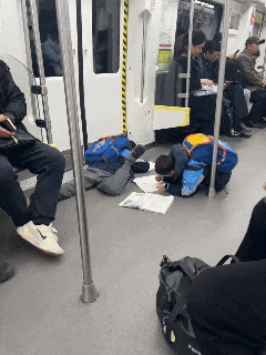 2026年1月1日,拍摄视频的博主告诉极目新闻记者,他当天上午在南昌地铁2号线上看到这一幕。当时两名背着书包的小男孩上车后不看车上的乘客,也不找座位,一咕噜滑铲倒地,趴在地上从书包里拿出书本和笔开始写作业,应该是在抄语文书上的生字。该博主说,他当时看到这一幕感觉很有趣,也很温馨,就拍下了一段视频。