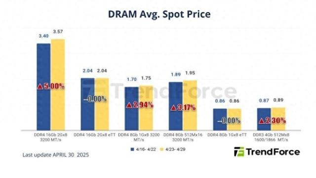 【ZOL中关村在线原创新闻】依据TrendForce发布的内存现货价格趋势报告,全球三大DRAM供应商宣布即将停产DDR3与DDR4 DRAM,这一决策迅速在现货市场激起波澜,买家为避免供应短缺风险,纷纷提前囤积相关内存产品。