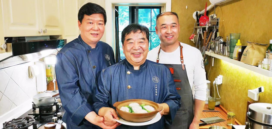 图中为郑秀生,图右为隋坡隋坡跟师父学的第一道菜,就是淮扬名菜清炖狮子头。探店时,当他看到菜单上有狮子头,总会点来试一试。他对这个菜有很深的认识,有一回还没吃,用筷子一插狮子头,就估摸出火候欠了15分钟。