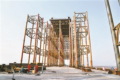 “特大”“最长”是永定河特大桥的特点,也给施工带来了不小的难度。中铁上海工程局京雄高速公路永定河特大桥项目经理王海涛介绍,拱顶的“中国结”风撑有12节段,其中最重的风撑重达100吨,且节段为异形构造,吊装时须精准定位,难度极大。而北京冬天寒冷的天气也给水上作业带来一定难度。“目前,我们每天早中晚都会开行破冰船破冰,确保水面不结冰,满足浮吊运行条件。随着天气转暖,破冰的难度降低,我们也进入了全面复工大干阶段。”王海涛说。