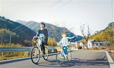 纪慈恩请人绘制了真真的形象,与她一起在江南骑行