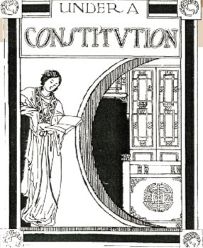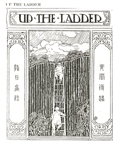 这组图画的设计,从构图的线条、花纹等装饰,到人物神态的慵懒、闲适,乃至边框的运用等等,无不沾染强烈的比亚兹莱风。所不同的是,内容上融进诸多中国元素,或者是闻一多成功地实现了转换,用比亚兹莱的画风表现了线装书、对联、戏装、窗格子、飞龙等等。这本《清华年刊》是1921级毕业班纪念集,梦笔生花,指日高升,扬帆起航的“清华”号,鲤鱼跳龙门,都是向初出茅庐奔向社会的年轻人的祝福,设计契合主题,体现书籍装帧形式与内容的高度统一。这个统一不仅是插图、封面的完美,还有整体的协调,也就是说,每一个细节都可能关乎设计的成败。我没有见过这本纪念册原件,闻立鹏(闻一多之子)介绍它“从黑色蜡皮的精装封面到扉页及书内各个专栏的题图、题花;从印刷纸张的选择,到文字、图版的版面,无不精心意匠经营”。(闻立鹏:《闻一多的书籍装帧艺术》)