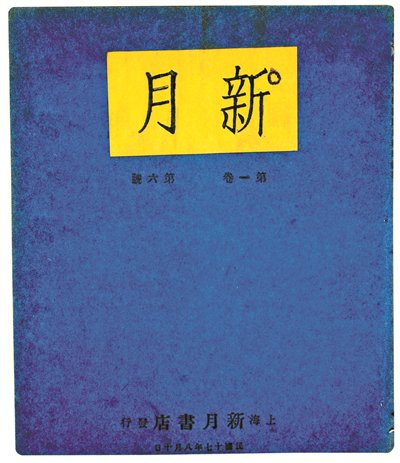 《新月》的形式与众不同,是一多设计的。那时候他正醉心于英国十九世纪末的插图画家璧尔兹莱(Beardsley,注:今多译为比亚兹莱),因而注意到当时著名的《黄书》(TheYellowBook,后通译为《黄面志》)。那是文图并茂的一种文学季刊,形式是方方的。《新月》于是模仿它,也用方的形式,封面用天蓝色,上中贴一块黄纸,黄纸横书宋楷“新月”二字……方方的形式在当时出版界颇有令人耳目一新之感。(《〈新月〉前后》,《梁实秋文集》第3卷)