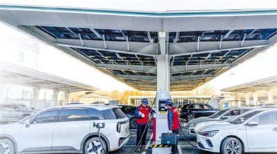 2025年12月25日,国家电网首都电力(朝阳)共产党员服务队队员在姜庄湖超充港巡检充电设备 摄影/刘小军