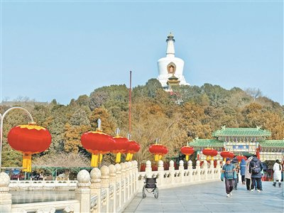 步入腊月,京城年味渐浓。北海公园内从团城、永安桥到湖岸沿线红灯笼高挂,与白塔碧波相映,静候马年新春的到来。