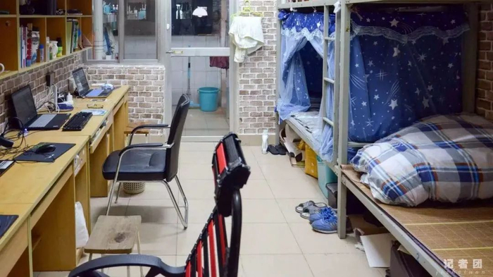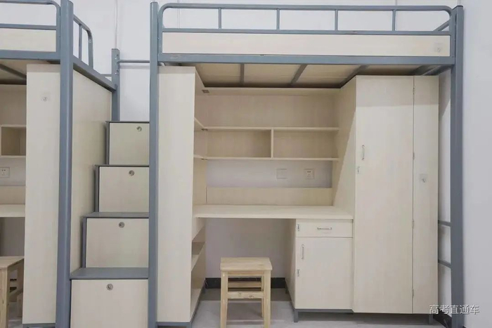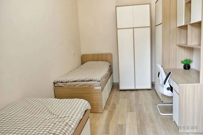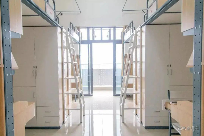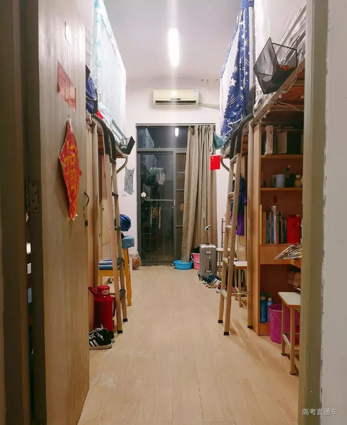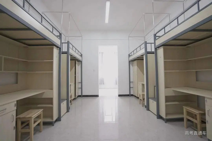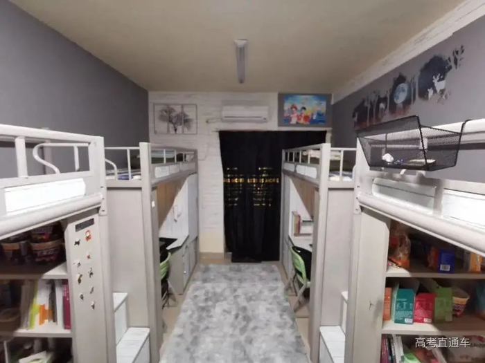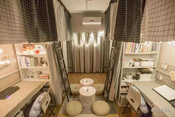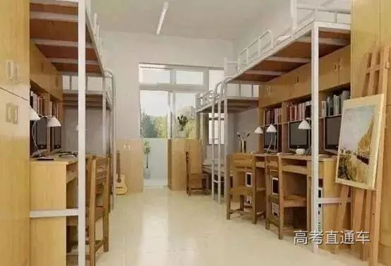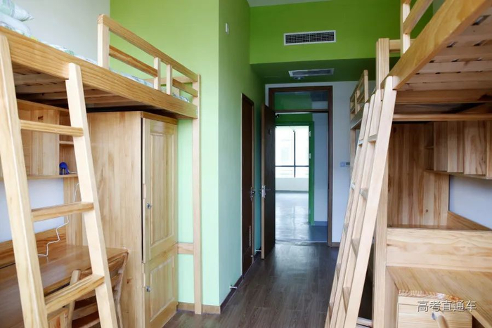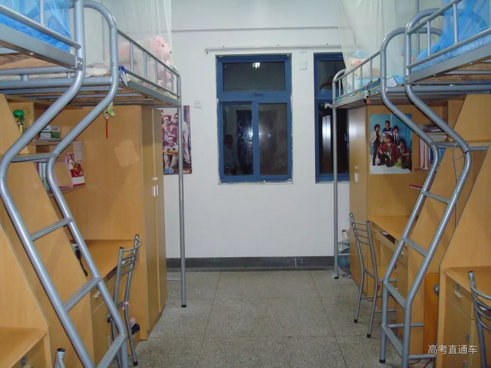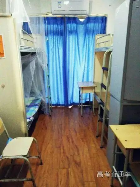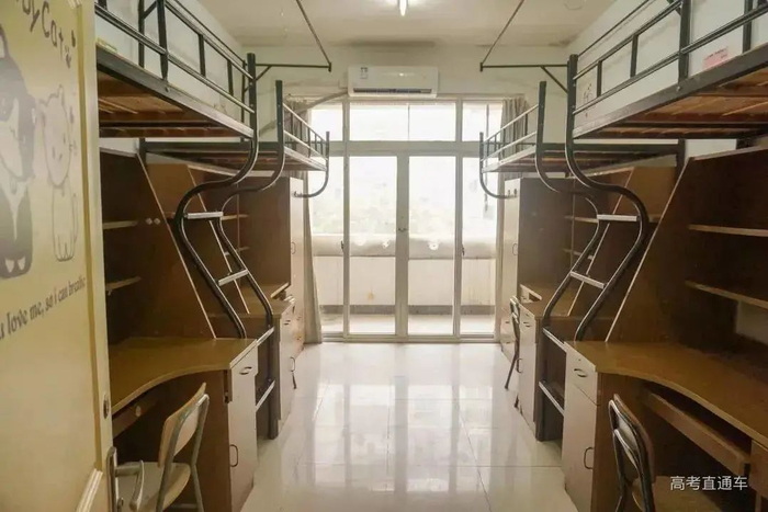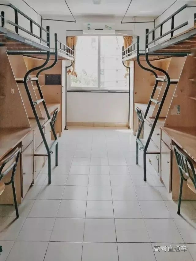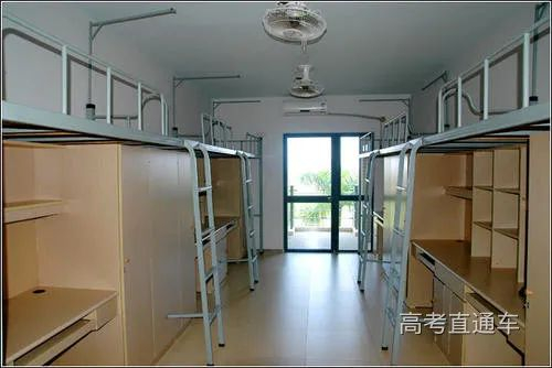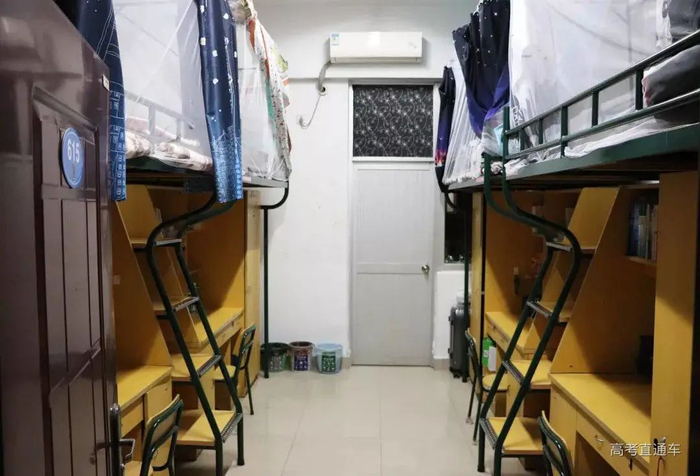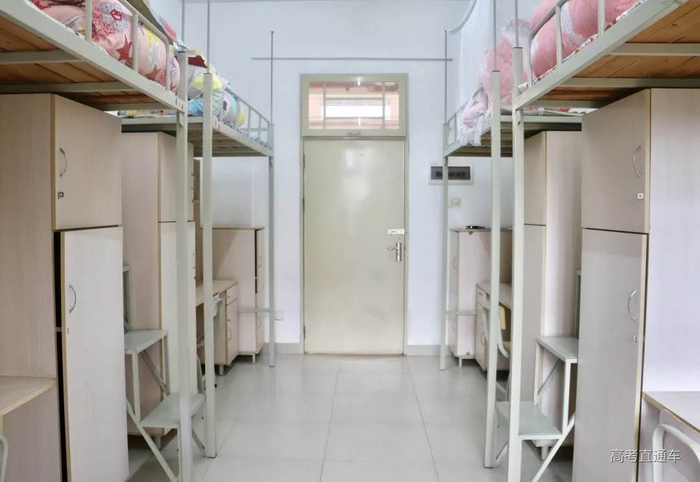 宿舍分为四人间和六人间还有八人间,有上床下桌和上下铺两种格局。每间宿舍都有空调,每个宿舍共用一张电卡。