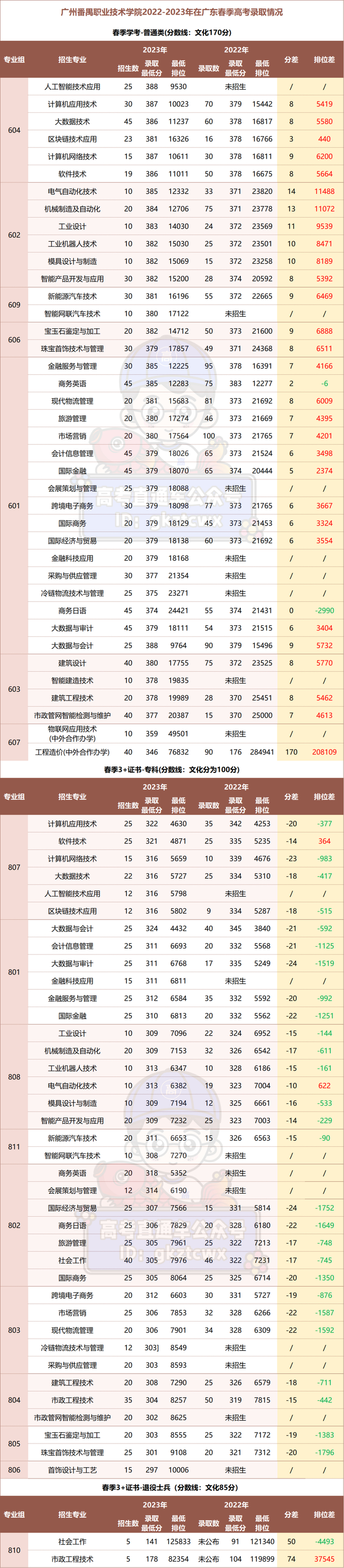 *数据摘录于广州番禺职业技术学院小程序,官网暂未公布,以下仅分析普通类专业录取情况。