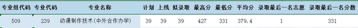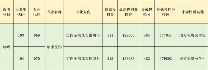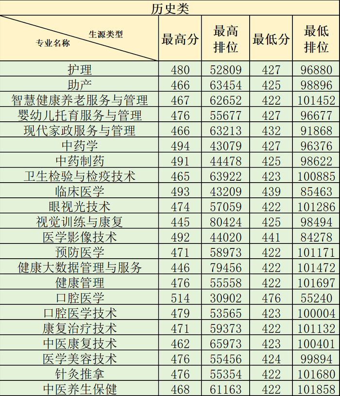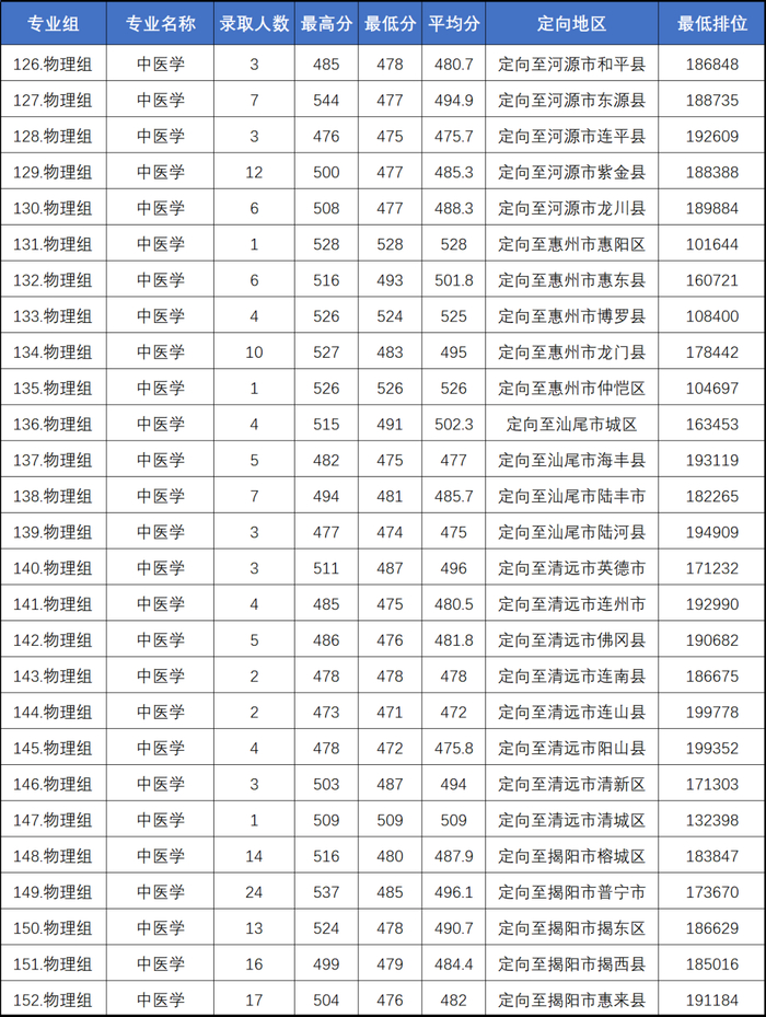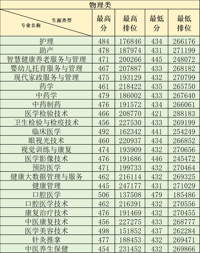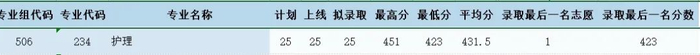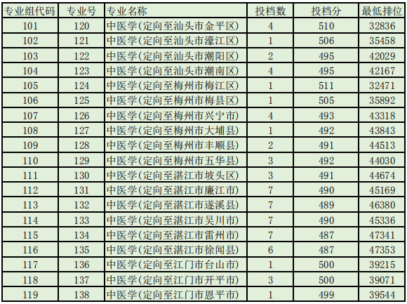 中医学计划42,投档42,实际录取42,最高分491,最低分476,最低排位为190341。