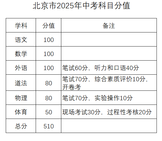截图来源:北京市人民政府根据该意见,北京市2025年中考总分510分,仅考语文、数学、外语、道法、物理、体育6科。与2024年相比,少了化学、生物、地理、历史四科(小四门),总分也比去年降了160分。考试时间两天,比去年少一天。