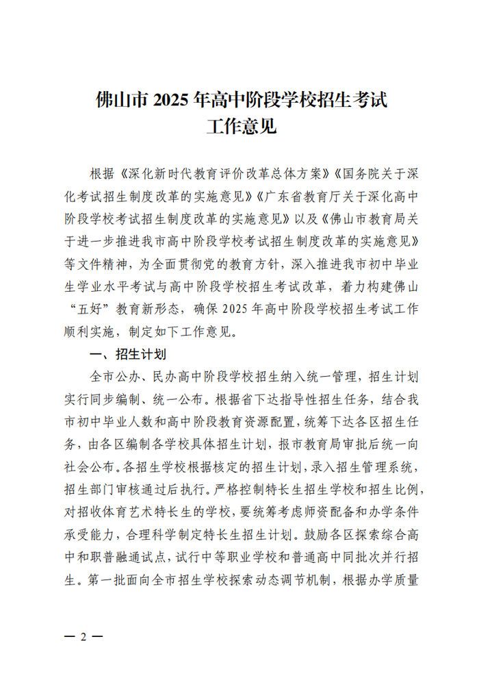 为全面贯彻党的教育方针,坚持立德树人,深入落实《教育部关于进一步推进高中阶段学校考试招生制度改革的指导意见》《广东省人民政府关于深化考试招生制度改革的实施意见》《广东省教育厅关于进一步推进高中阶段学校考试招生制度改革的实施意见》等文件精神,适应经济社会发展对多样化高素质人才的需要,从有利于促进学生健康发展、科学选拔各类人才和维护社会公平出发,深化考试招生制度改革,充分发挥考试招生制度的正确导向作用。现就2025年我市初中学业水平考试与高中阶段学校招生工作提出如下意见。