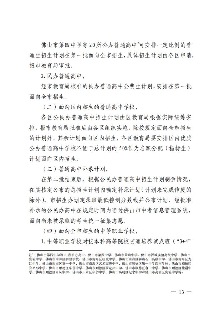 2.优化招生批次,发展中职教育:将原优先批与提前批合并,放至提前批第一层次新增中职本科贯通培养班,在提前批面向全市招生。