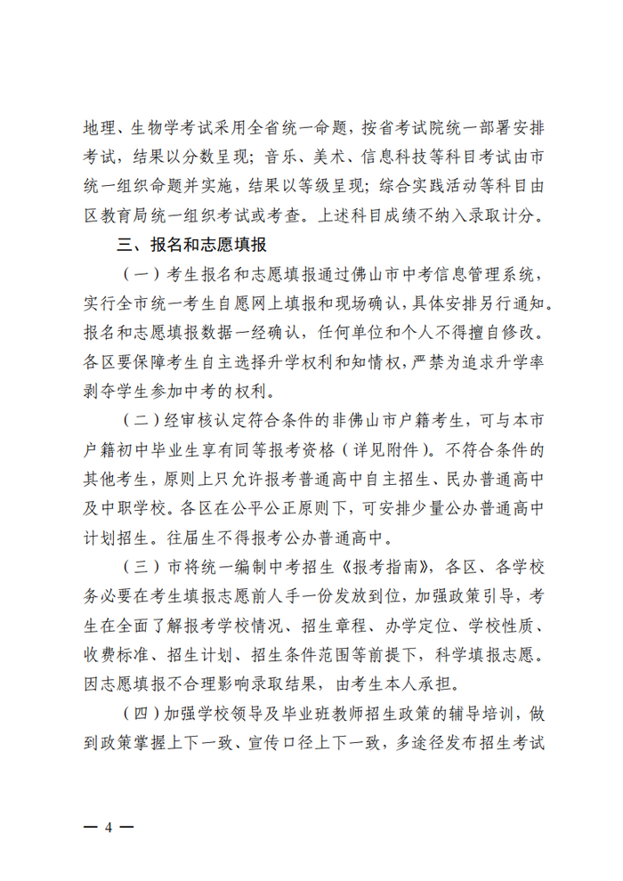 今年佛山市中考有以下变化: