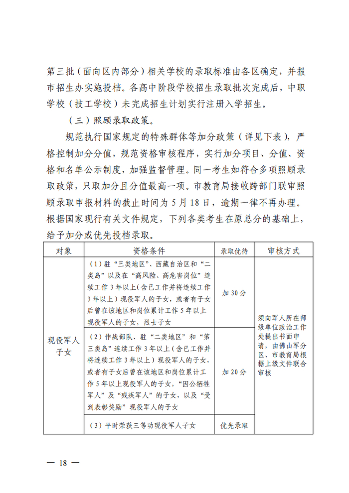 3.严格控制加分项目及分值。全面清理加分项目,取消国家规定以外的所有加分项目,严格控制加分分值。规范执行国家规定的特殊群体等加分或优待政策,严禁以任何方式扩大范围。加强考生加分或优待资格审核,严格资格认定程序。根据国家有关规定享受加分或优待的考生,由相关部门严格审核。实行加分或优待项目、分值、资格和名单公示制度,强化监督管理,确保公平公正。