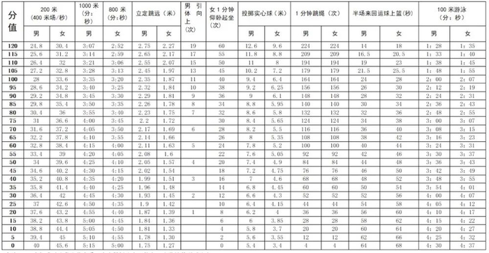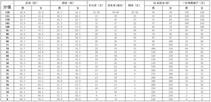体育中考取两项考试成绩得分的平均分,平均分超过100分的按100分计,然后按0.5的权重计入总分,体育满分为50分。