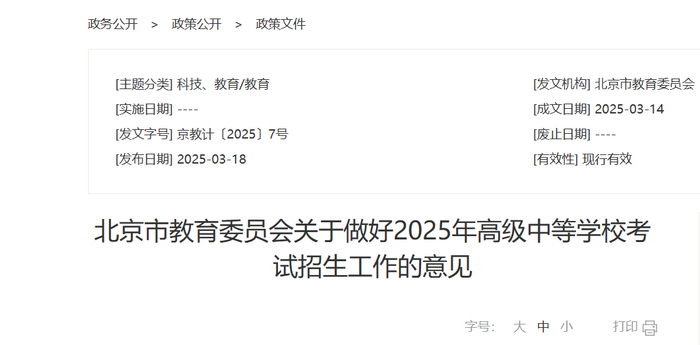 近日,北京市教委日前发布《关于做好2025年北京市高级中等学校考试招生工作的意见》,确定2025年北京市中考政策。