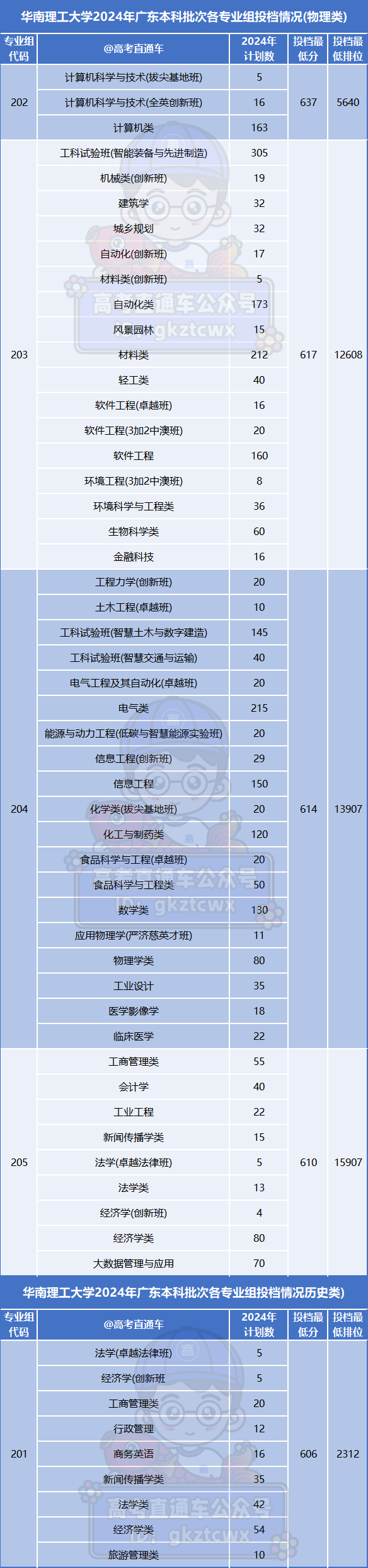 在2024年广东本科物理类投档情况中,华工最低投档门槛高达610分/15907名,计算机类等热门专业的最低投档分则达到了637分/5650名。
