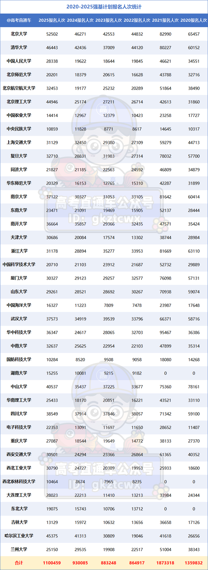 2025年强基计划共有39所高校启动招生,全国总报名量突破109.7万人次,较2024年的93万人次增长约16.7万,实现显著攀升。