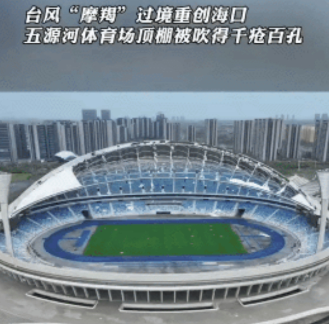 除了很多人联名抵制,连天气都不作美,台风吹着吹着,就把侃爷要举办演唱会的五源河体育场吹坏了,