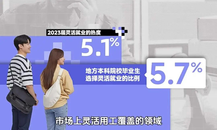 2023届灵活就业的热度比去年有所上升(从4.7%到5.1%);从院校类型上看,地方本科院校毕业生,选择灵活就业的比例(5.7%)更高。
