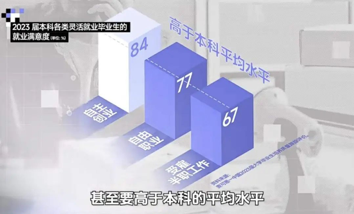 除了不同专业冷暖自知之外,当前的就业环境还有一大特征:灵活就业热度上升,自主创业满意度超本科。