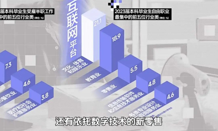 同时,这些平台也是吸纳最多本科毕业生灵活就业的地方。具有代表性的,就是直播和自媒体占大头的文体娱乐,还有依托数字技术的新零售。