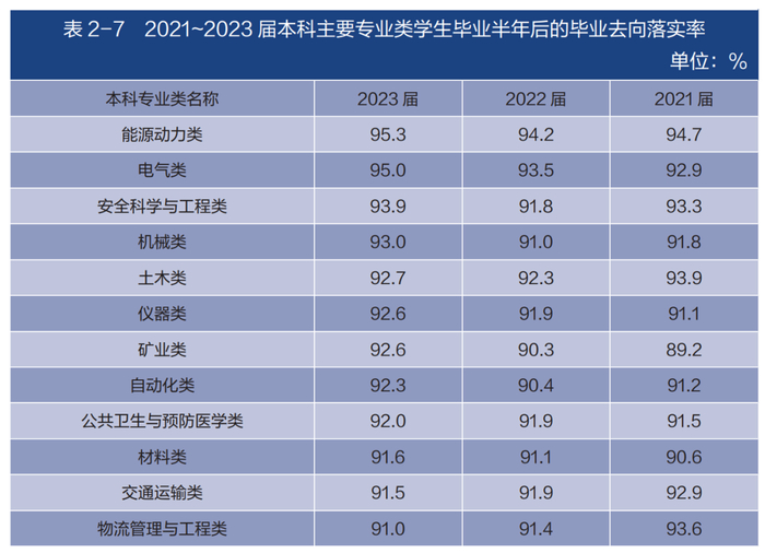 装备制造业、能源和基建三大领域依然领跑。传统工学类专业,尤其是能动类和电气类,继续保持在前两位,不得不说它俩真的是又老又新的专业。