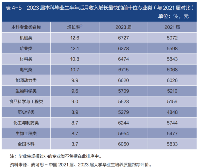 对于制造业来说,高端化、绿色化、智能化转型,也直接为机械类毕业生创造了新机遇。机械大类的就业整体排名上升到了第4位,而且机械类的收入增长直接拿下第一。