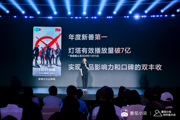 2024年,番茄小说IP授权作品数量超过150部,其中6部影视IP登上了各视频平台的发布会。在今年的番茄小说创作者大会上,番茄小说IP负责人李茜茹表示,“番茄小说巅峰榜持续不断涌入优质内容,我们将充分调动规模庞大的用户粉丝群体,为行业提供增量价值。”