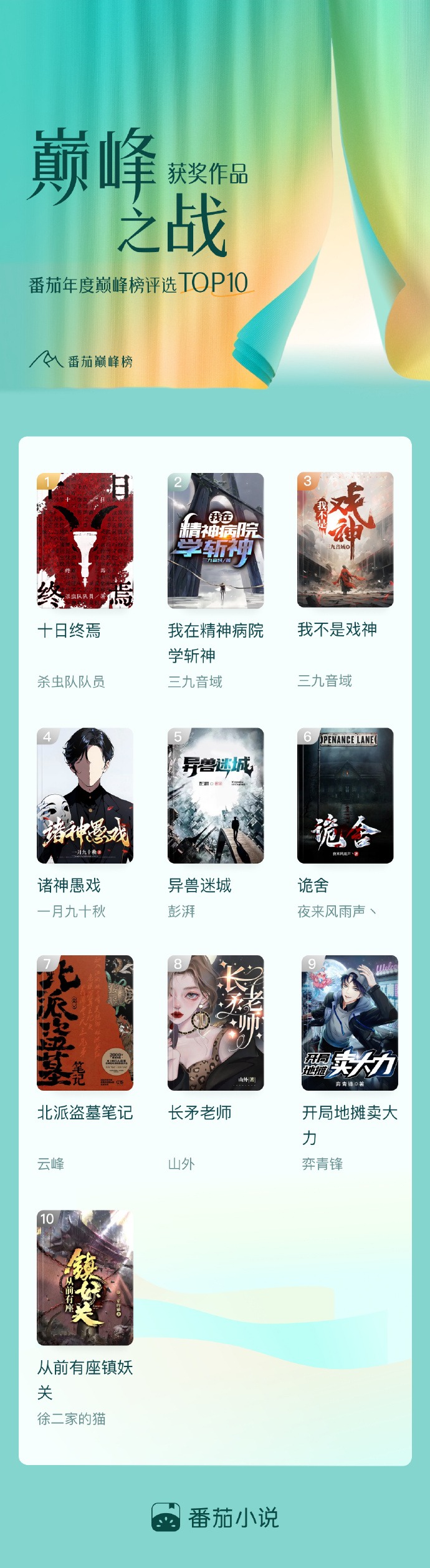 在今年番茄创大上,《十日终焉》作者杀虫队队员分享了这样一段话:“巅峰榜对于我来说眼前一亮的点在于,它的「去类型化」。无论男频、女频,无论题材、字数,也不考虑作者的知名度和过往作品,无论你是谁,你都有可能以一个新人的身份从人海书海当中杀出来,登上巅峰榜单。”