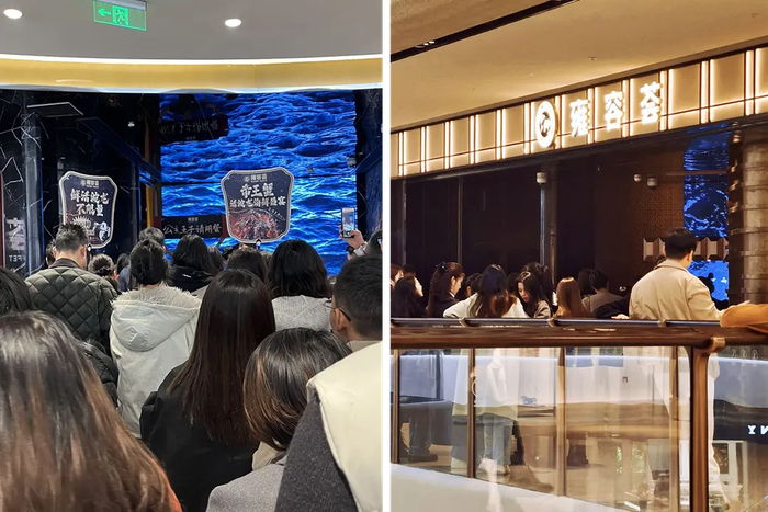 如贵阳一家人均540元的海鲜自助,日常需要等位,周末甚至提前一周预定;又如成都的雍容荟,人均600元,其西安的门店排队现场被消费者戏称为“堪比菜市场”。