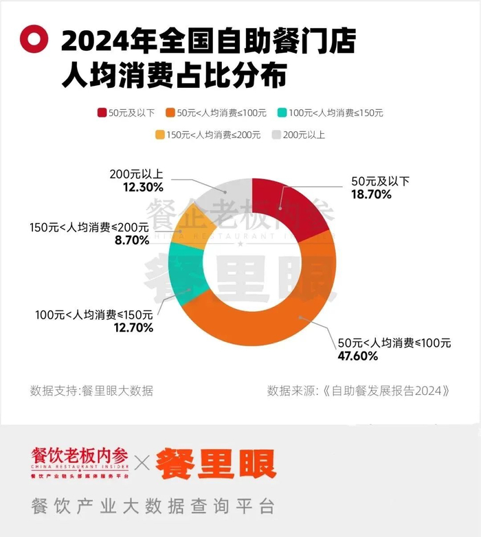 《自助餐发展报告2024》显示,2022—2024年,全国自助餐人均消费呈下滑趋势。截至2024年7月,人均消费在100元及以下的自助餐门店占到了66.9%。