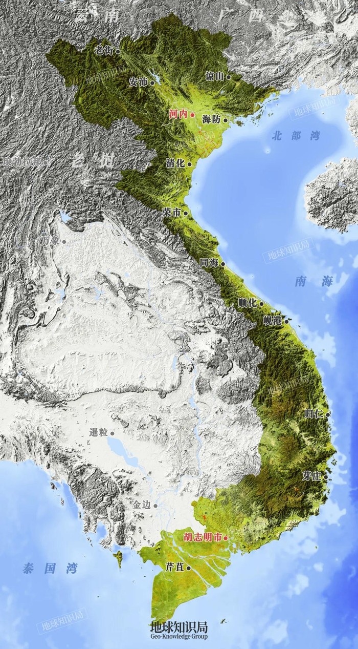 越南是一个国土狭小的国家,面积接近我国的云南省,国土形状狭长、多山,却有1.01亿人口,超过我国的山东省,低于广东省。