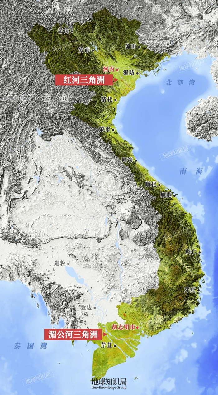 越南的两大河口三角洲分布上正好一南一北